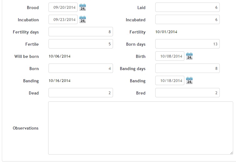 12. Days to band: My-Breeding.com assigned, by default, the number of days the breeder parameterized in the type specimen of the female. It can be modified at this stage for female / brood in particular.